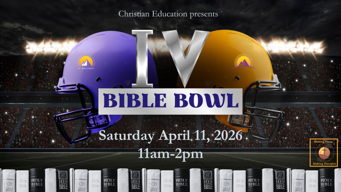Join us for our 4th Annual Bible Bowl. Fun and Friendly test of your Bible knowledge. Prizes will be given to teams and audience.
